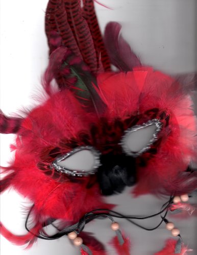 Red & Black Feather Eye Mask Mardi Gras Halloween Costume Review